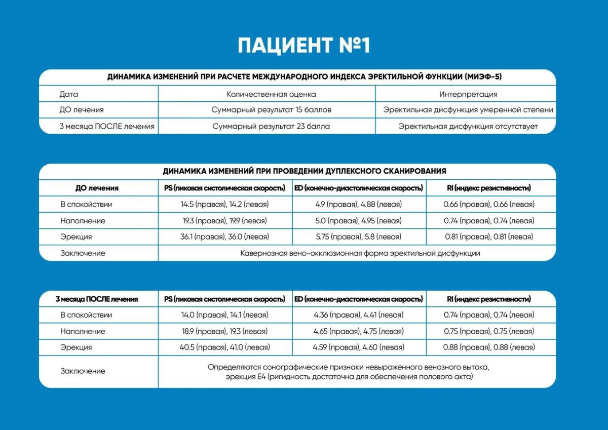 Через 3 месяца после терапии экзомосами результаты дуплескного сканирования показали выраженные улучшения по всем показателям кровообращения в кавернозных телах.